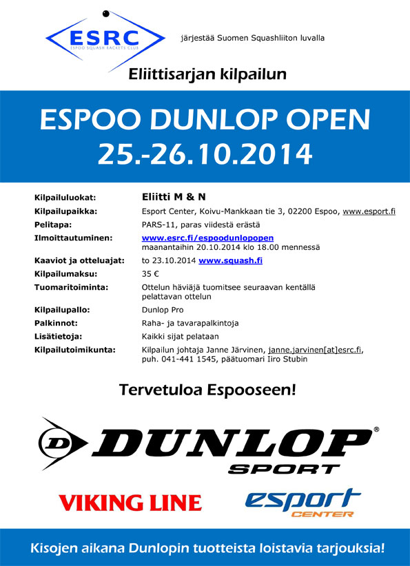 Pääkentän ottelut livestriiminä osoitteessa squash.fi/live