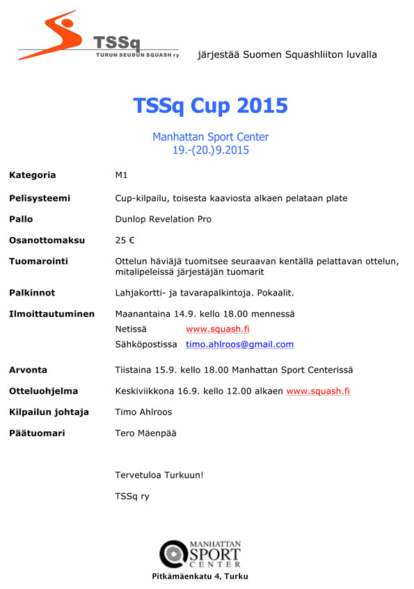 Miko Äijänen vei ykköskaavion TSSq Cupissa Manhattan Sport Centerissä. Kakkoskaavion paras oli Erik Mäki ja kolmoskaaviossa jylläsi Juha Kuuluvainen. Tulokset täällä alempana sekä Tournamentsoftwaressa.