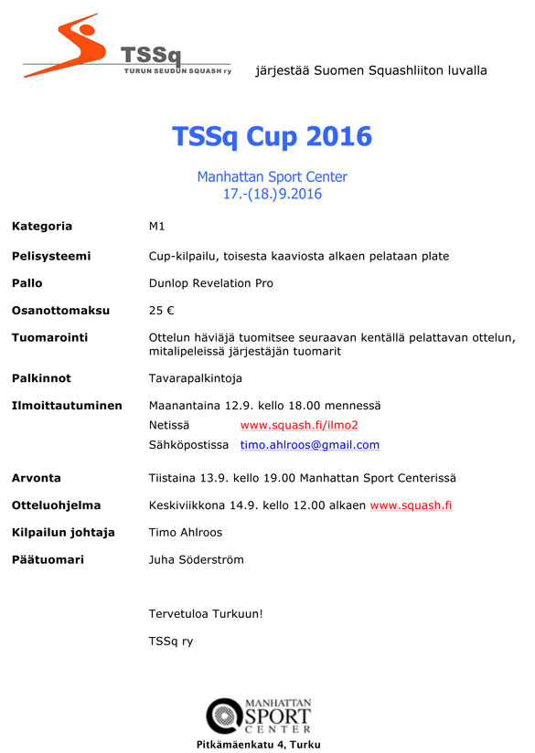 Miko Äijänen puolusti menestyksekkäästi viime vuoden voittoaan TSSq Cupissa Turussa. Neljän pelaajan lohkona pelatun kisan kakkoseksi nousi Anssi Määttänen ja kolanneksi Ville Karsikas. Peränpitäjäna oli Topias aalto.