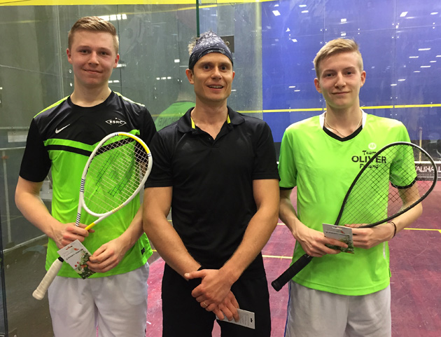 Miehet 1: 2. Elias Korhonen ESRC, 1. Heikki Kononen KSQ, 3. Ville Koskinen SqK