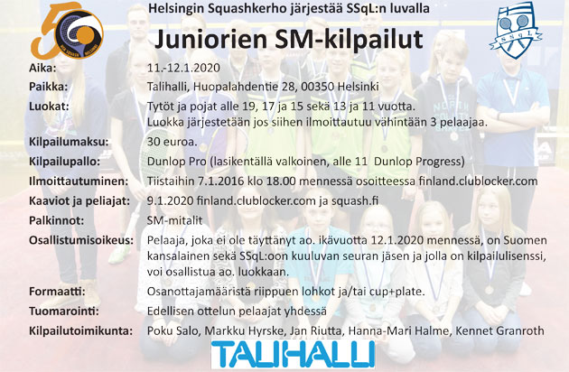 Oskari Laitinen OSK ja Viola Joutsi SquNa kruunattiin vuoden 2020 u19 sarjan mestareiksiHSK:n järjestämissä junioreiden SM-kilpailuissa Talihallissa. Tulokset löytyvät Club Lockerista.