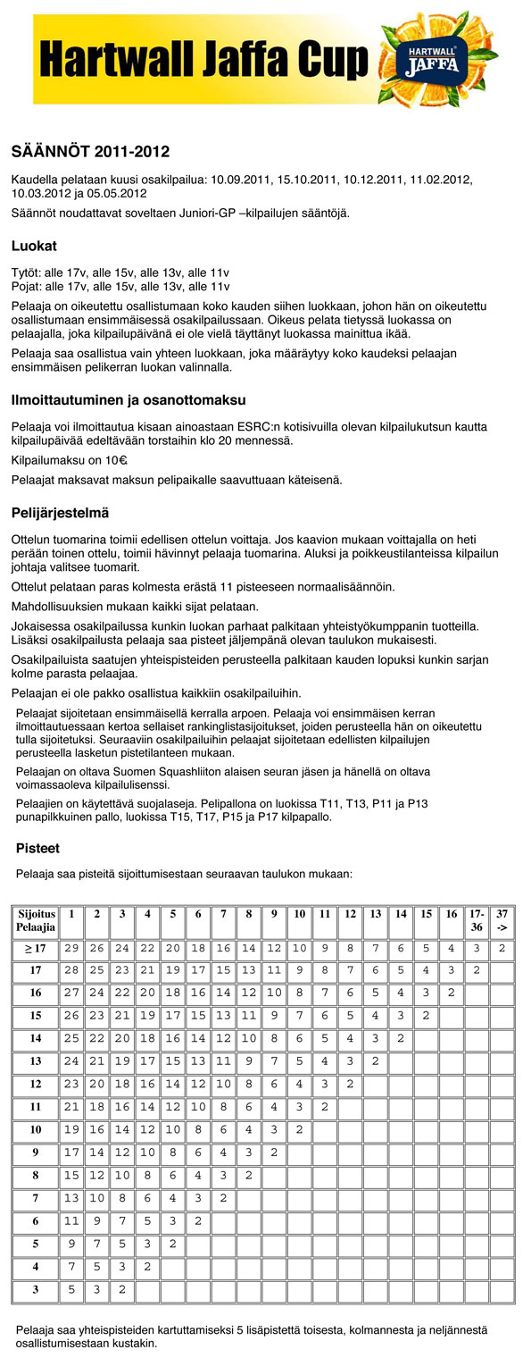 Ilmoittautuminen Jaffa Cupiin on ESRC:n nettisivuilla: www.esrc.fi/next/?p=6098