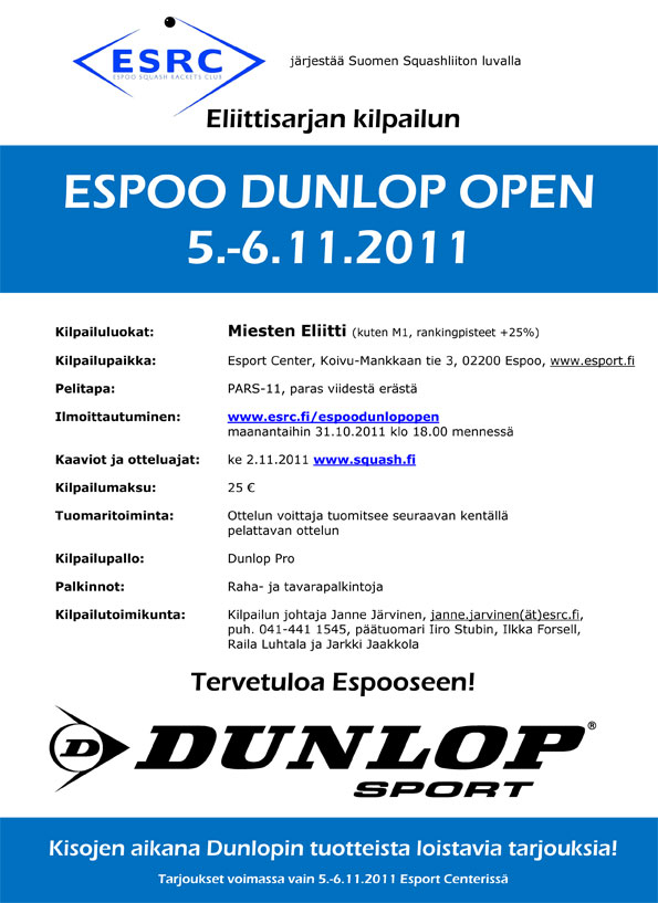 Olli Tuominen oli löytänyt parin päivän reijän syksyn ohjelmastaan ja käväisi Espoossa kuittaamassa kauden ensimmäisen eliittisarjan turnauksen voiton. Loppuottelussa Mika Monto jaksoi pyristellä vastaan vielä ensimmäisessä erässä, mutta Tuomisen tempo oli lopulta liikaa ex-ammattilaiselle.